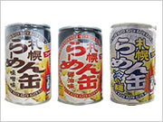 札幌らーめん缶テレビ・インターネットで話題沸騰! 札幌ラーメン缶は通常の麺の代わりにヘルシーな”こんにゃく”を麺にすることで、伸びることのない簡単でヘルシーなラーメンです。 具材にもメンマ・豚肉が入り、「たかが缶詰」と侮ってはいられない。 スープも某有名店の店主が監修したこだわりの本格スープを採用。 「スープ・麺・具材」と3拍子が揃った本格的なラーメン缶です。 「味噌味」「醤油味」「冷やし麺」と3種類あります。 【 詳しくはこちら 】